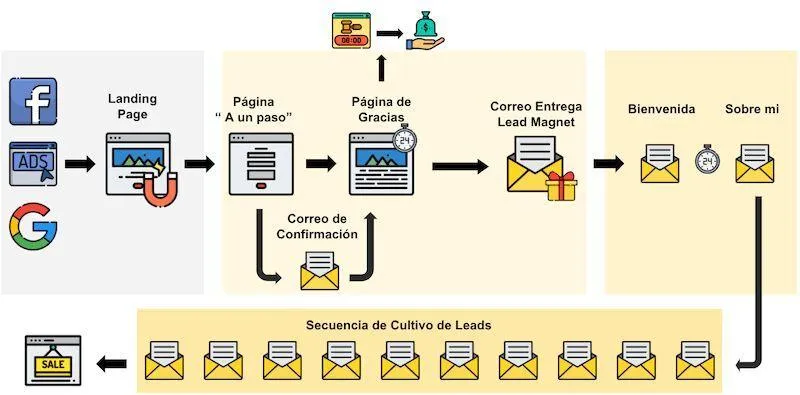 Todo el proceso, desde la captación de leads hasta la nutrición y el seguimiento, está completamente automatizado. Esto significa que mientras tú y tu equipo se enfocan en cerrar ventas, nuestro sistema trabaja 24/7 para asegurarte un flujo constante de prospectos listos para comprar.